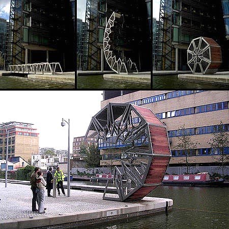 Este increíble puente extensible está ubicado en la cuenca de Paddington en Londres, fue creado por Thomas Heatherwick. Se trata de un puente de doce metros de largo y se abre o extiende todos los viernes al mediodía. (Agencias)